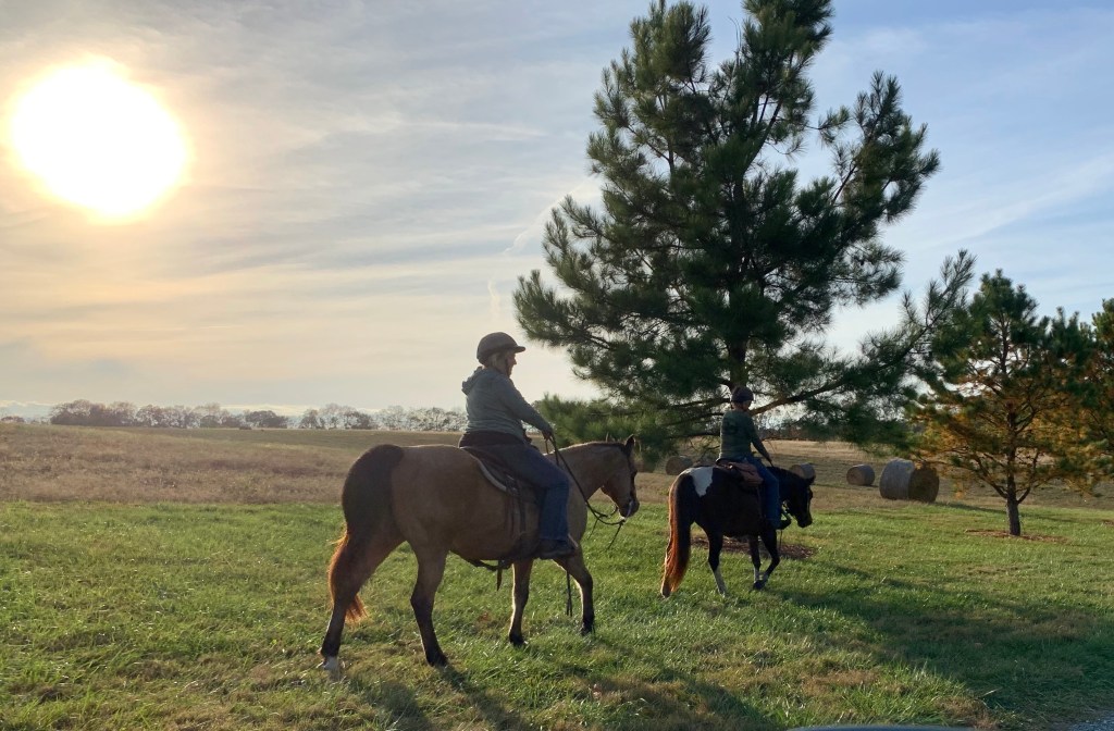 At the last bend in the road, the landscape opened to vast fields dotted with hay rounds. The sun glared in my eyes, but I caught a glimpse of a horse, and then a second horse. I had noticed bridle path markers earlier. Now, my day was complete. Slowing down not to startle the horses, I watched the two riders carefully ride along the designated trail. As I reached them, I asked them about their trail experience, “It is beautiful here we love riding these trails, yes, we o come often, ” replied the woman on the dark horse. I smiled as I drove away. Our drive finished at Route 50. Our magnificent adventure had come to an end – for today.