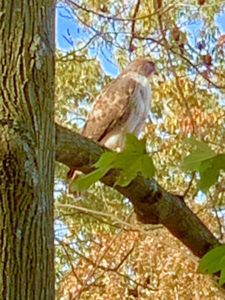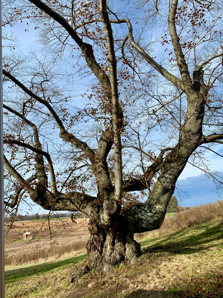 “The two Sargent cherry trees to the left, were planted in 1918 and are the oldest cherry trees in the United States,” our guide told us. “On the right, we are passing the Enchanted Garden with the Faerie House – see it’s thatched roof? This is the children’s garden.” “The American sycamore next to us is 273 years old and is the oldest tree at Winterthur,” she described as we oohed and aahed. Someone exclaimed, “Look – there is a hawk in that tree!” Our guide stopped the tram and allowed us to take time admiring and photographing the handsome raptor.