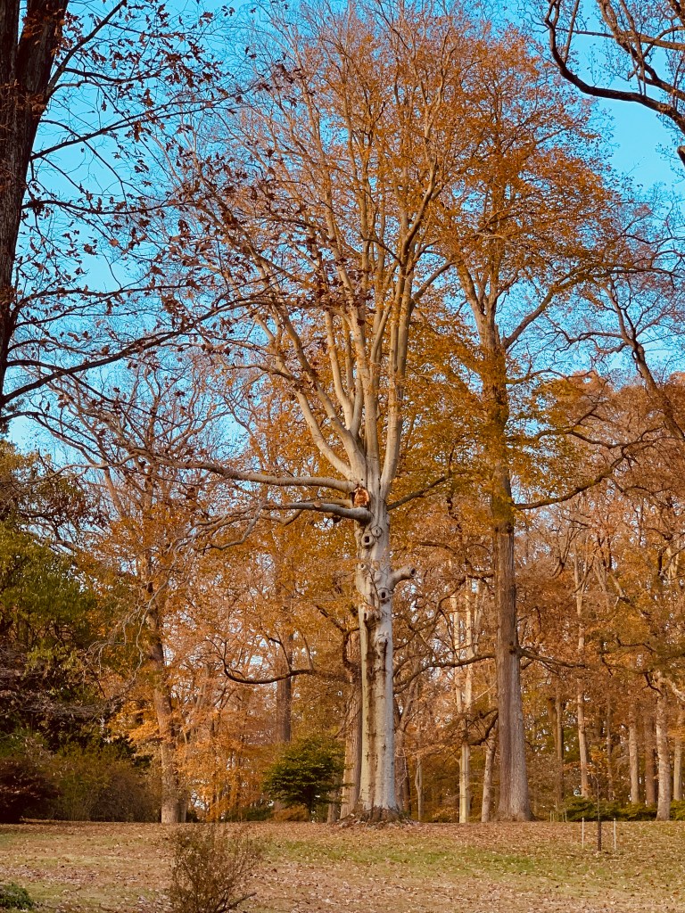 We walked back to the Visitor’s Center. We came across a grove of very tall trees. What surprised me was the absolute straightness of their trunks. They were very tall with their branch canopies more than 100 feet above. I wondered if squirrels climbed that high.