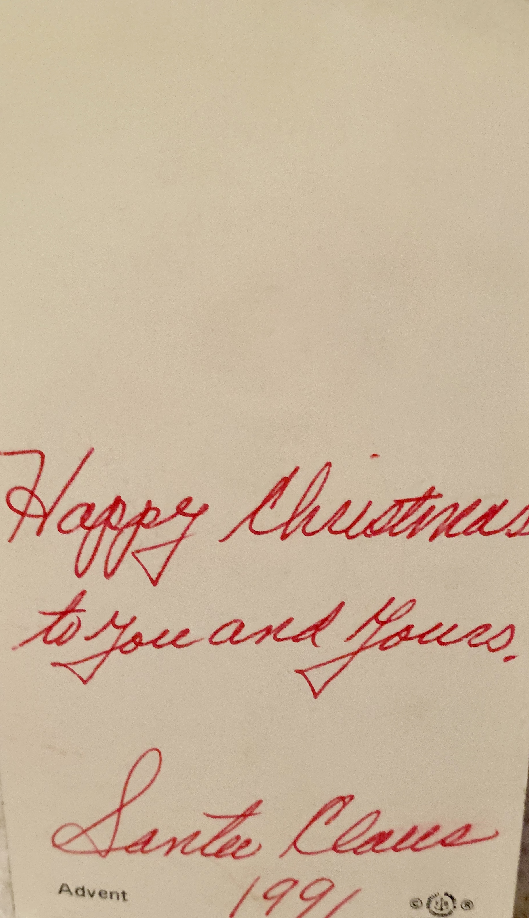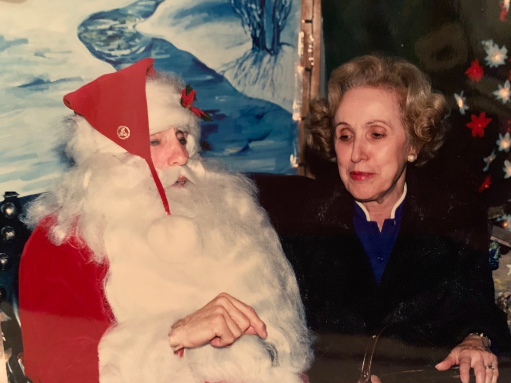 The year that my father passed away, my mother accompanied us on our visit. She stood near the sleigh to hear Santa’s instructions and reactions. He stopped, turned toward her and invited her into his sleigh. “Grandma, to you, I wish peace and calm. It will get better. He gave her a lollypop and a card. How did he know??