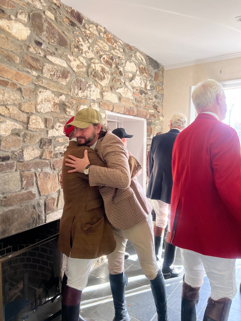 At the Hunt Breakfast, two industrious and generous members were awarded their Colors. Russell Shifflet and Andrew Camp were recognized for their tireless work on helping clear trails and jumps, helping with social events, and working on the Hunter Pace, the Point-to-Point races and at the Hound Show. Getting one’s colors is a significant milestone in one’s fox hunting career. As Color Members, the gentlemen will sport scarlet coats with the club colors on their collars as well as the buttons of their coats will be engraved with the club’s initials. It is indeed a high honor and well deserved. As in all social clubs, it takes everyone’s contribution to reach success.