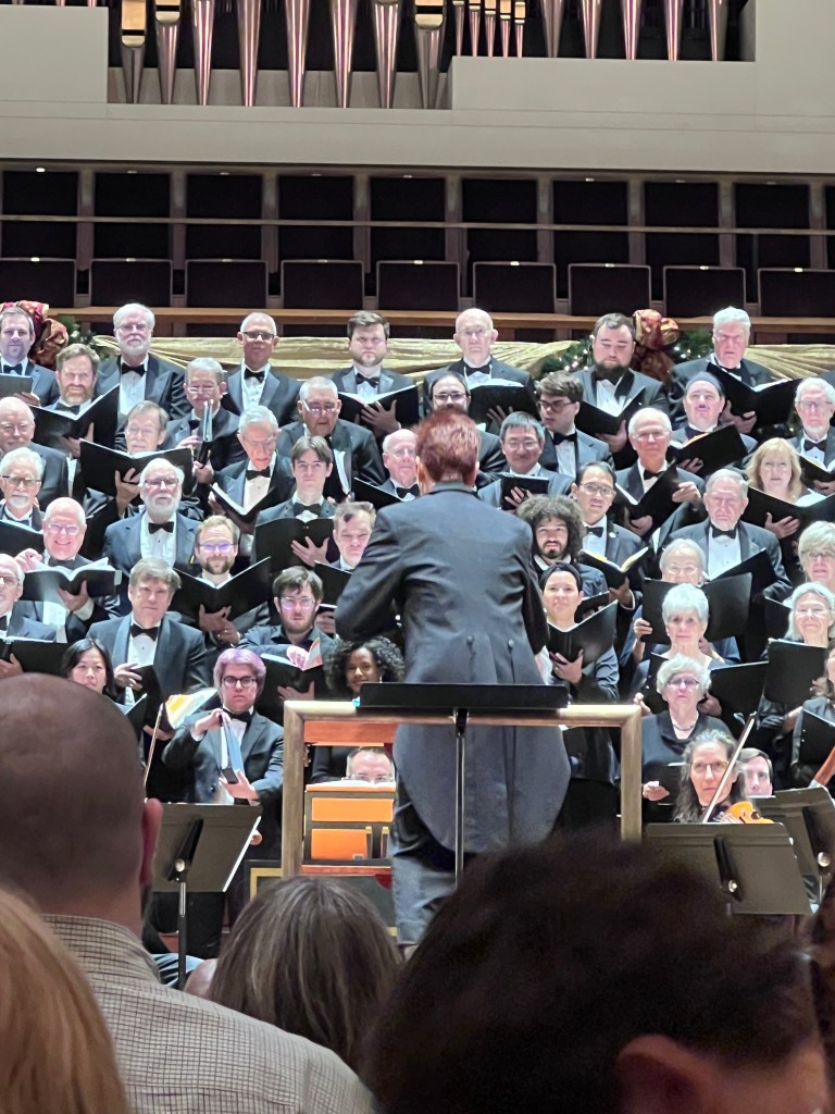 This year, I managed to keep my place in the score and sing my alto line. I was certainly not perfect, but I managed to stay faithfully focused. Some passages live in memory. Others still required careful reading and courage. There are always fewer altos than sopranos at a sing-along. There were moments when the alto came in alone. I hoped to hear another alto nearby but trusted the line. The sopranos around us were extraordinary. Their voices soared, bright and fearless. I wondered what it might feel like to have that vocal ability.