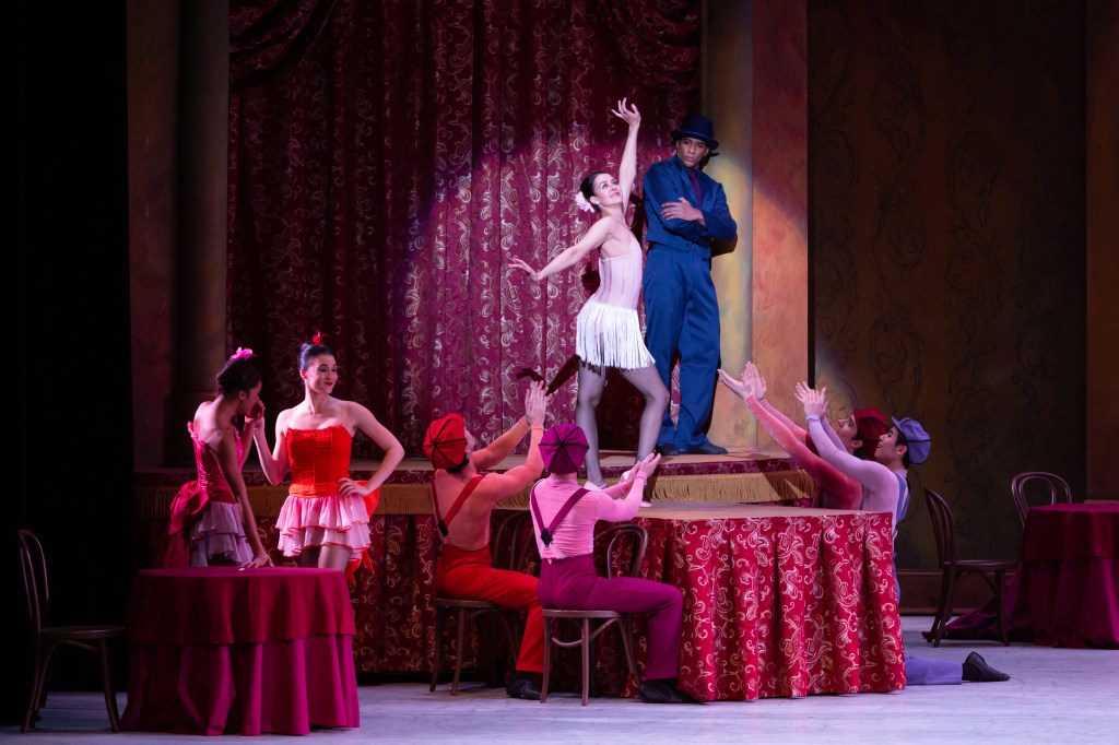 Slaughter on Tenth Avenue, also by Balanchine concluded the program. Set in a saloon complete with a striptease girl, gangsters, gentlemen, ladies, and of course, police, it was fast, bright, and fun. No pointe shoes there but brilliantly colored character shoes punctuated the choreography. There was Broadway feel with dramatic balletic artistry laced with a bit of melodrama.
