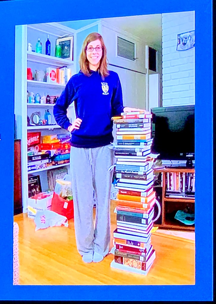 Bekah’s stack of books for one semester on graduate school Image curtesy of Bekah Nettekoven Tello and Chamber Dance Project