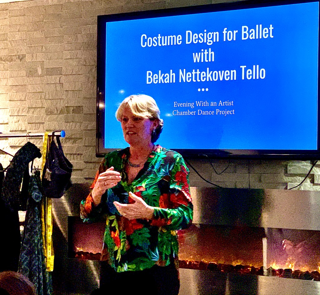 On February 11, Bekah Nettekoven Tello, Costume Designer and Wardrobe Master, of the Chamber Dance Project, shared her creative process in colorizing and texturizing dance for the company. “Costume Design for the Dance,” a part of Chamber Dance Project’s “Evening with the Artist Series,” brought an intimate look at the creative process of costuming.