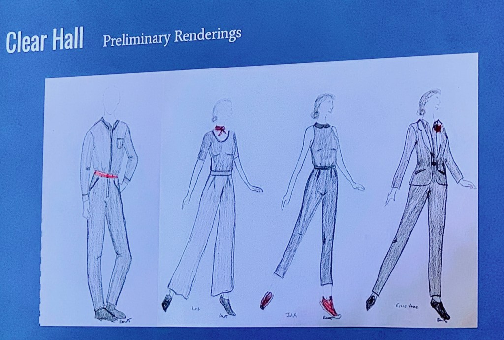 The audience engaged in a mock costume shopping exercise. We shopped for garments for male and female dancers in shades of gray. Decisions of the types of red accents were discussed. The specific dancers’ measurements were shared. We took to our smartphones to try to procure the items. Key considerations were price, available quantities, textures, fabric cleanability, available sizes, return policies, comparison with the sketches, and speed of delivery. Products located included blouses, red mesh sneakers, black jazz shoes, men’s button shirt, red belt, and ladies’ cropped trousers.