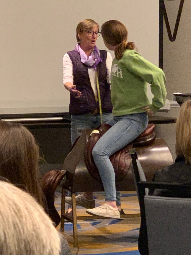 Bekah took the audience on a journey of costuming ideas through brilliant slides of dance and costume challenges. “Lampshade or hat?” she asked. She has converted sweaters to pants and blankets into dresses. She explained that with the advent of new fabrics, choreography has changed and expanded ranges of motion. Shape, movement, partnering, quick changes, are just some of the design considerations.